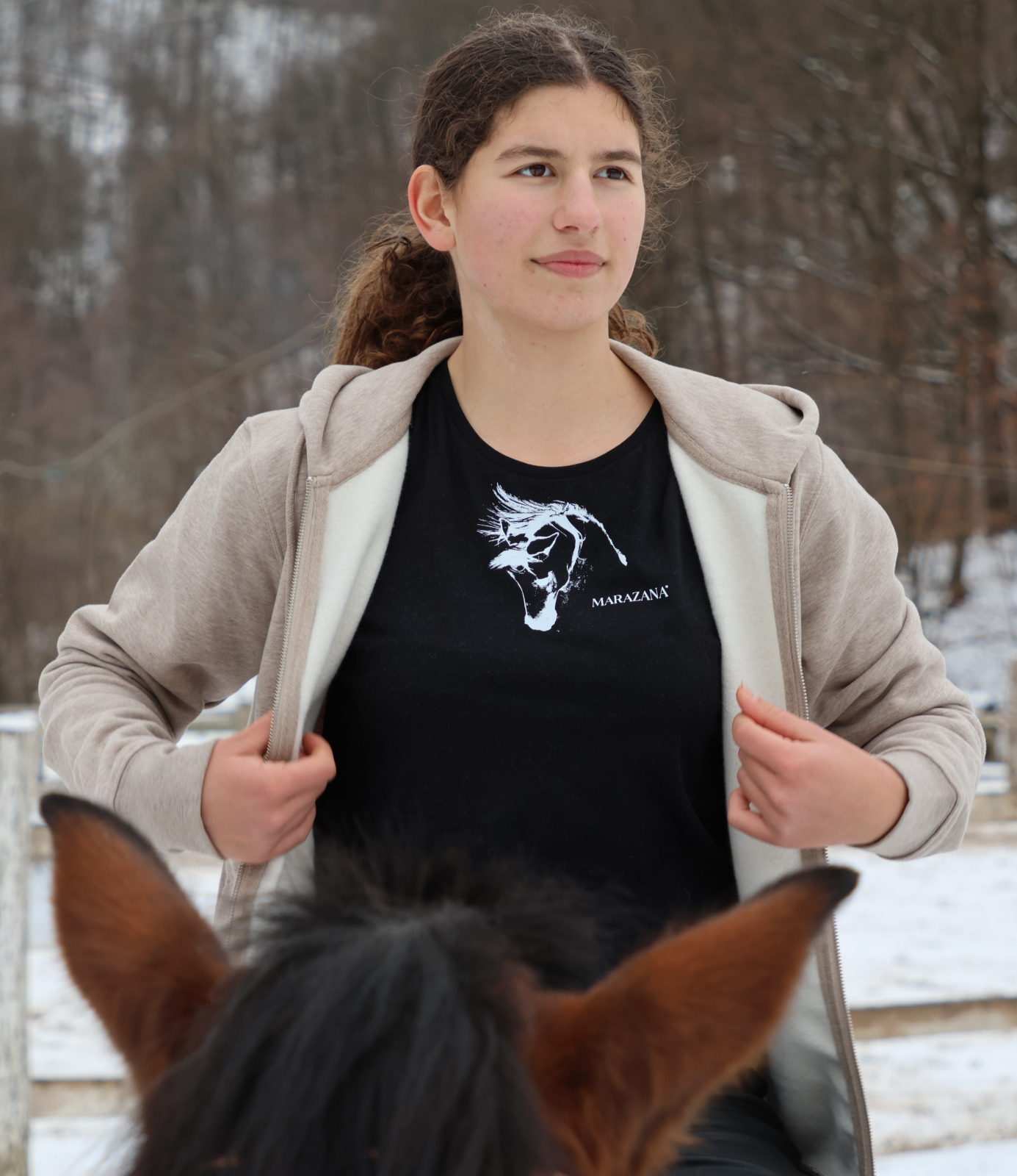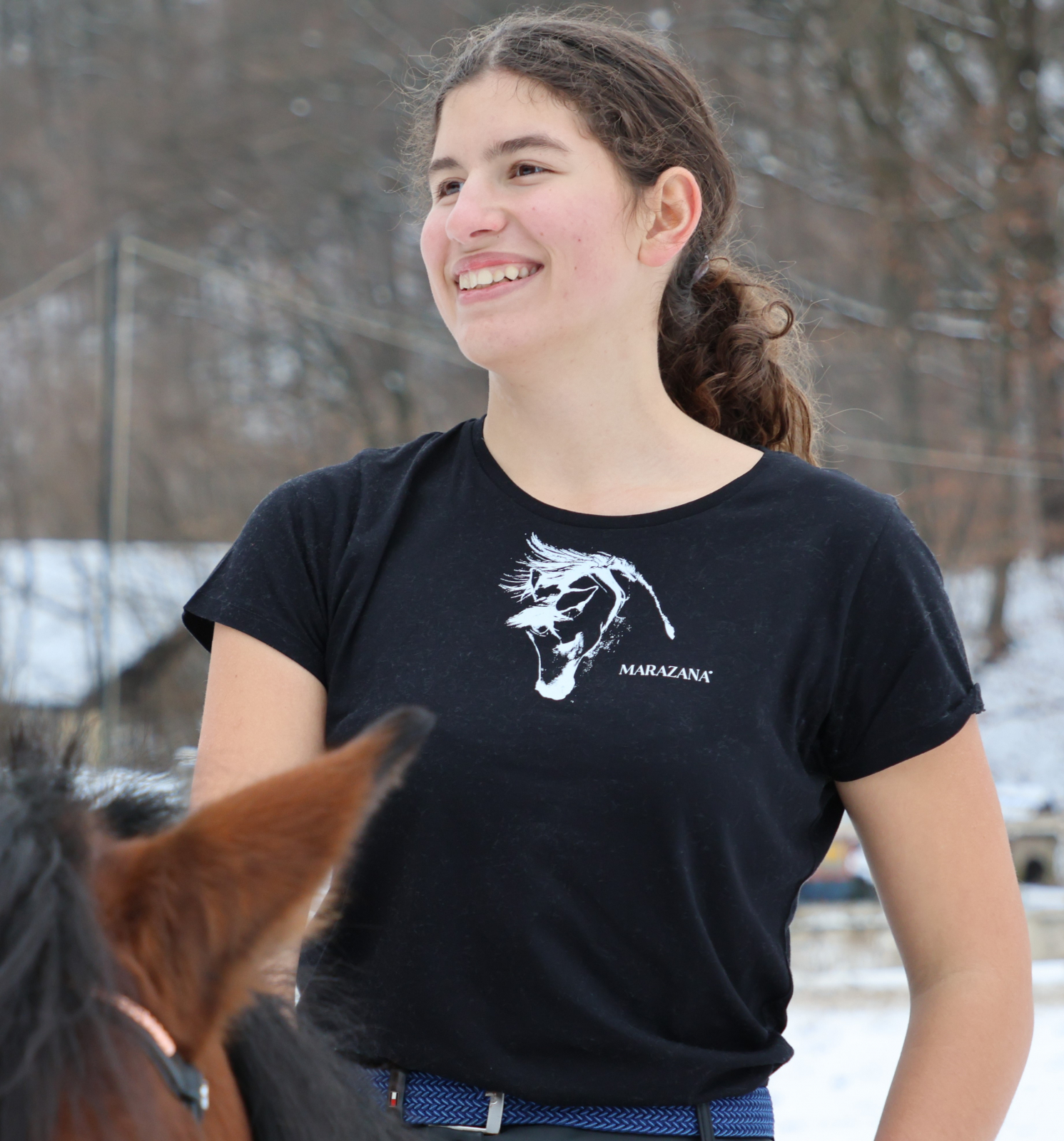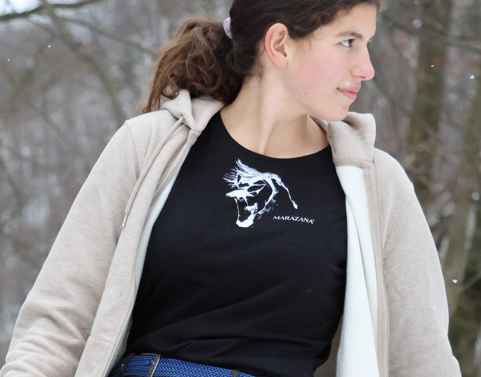 Mara are 177cm înălțime, 70kg, și poartă un tricou mărimea L. Mara is 177cm tall, weights 70kg and she is wearing an L size t-shirt.